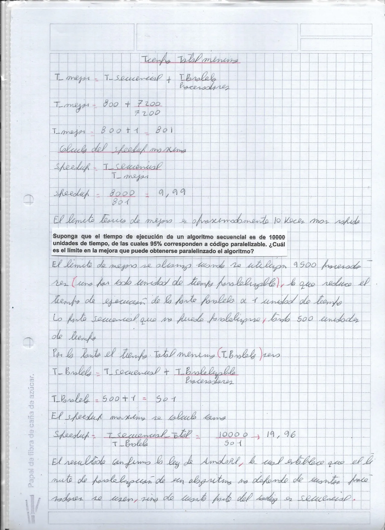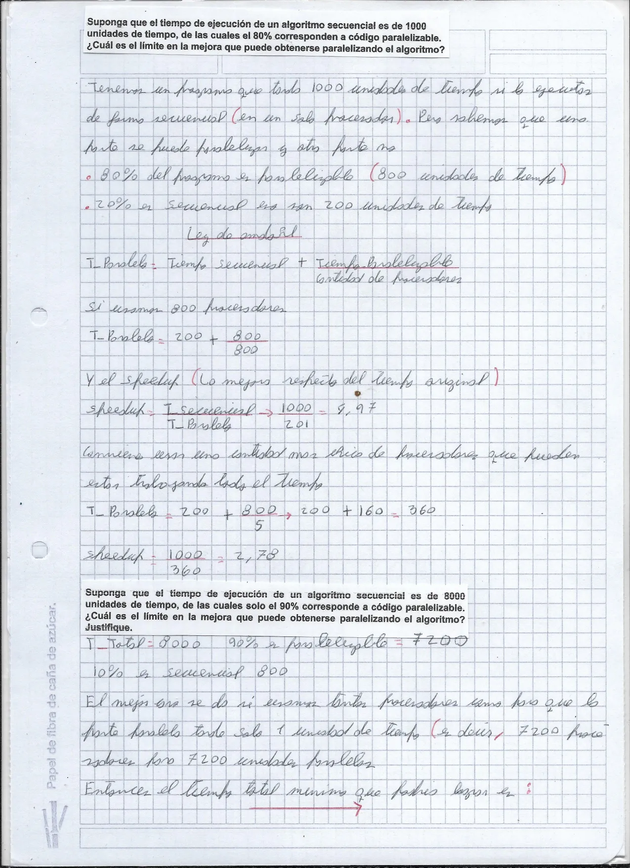 - 15) Suponga que el tiempo de ejecución de un algoritmo Secuencial 3