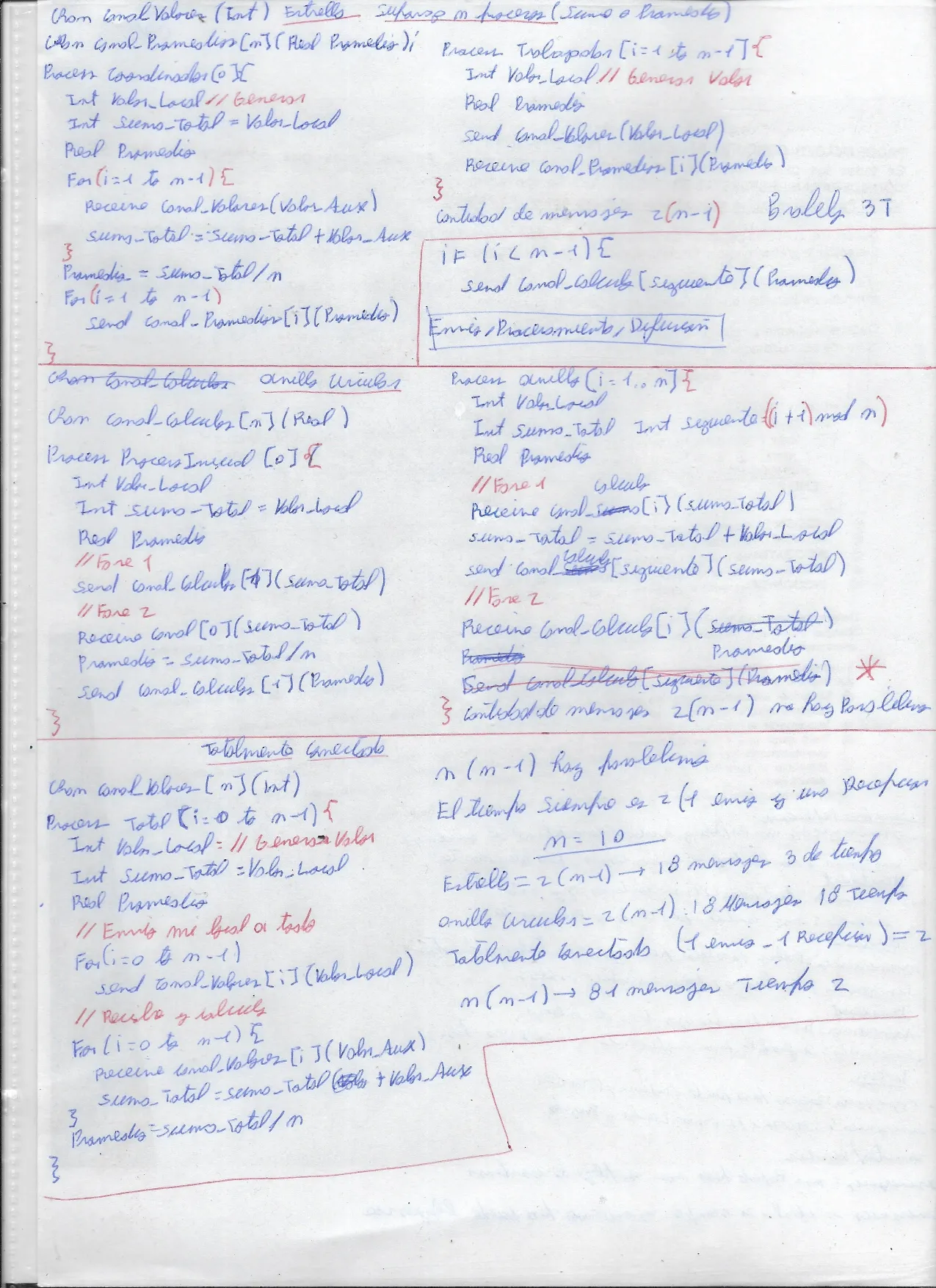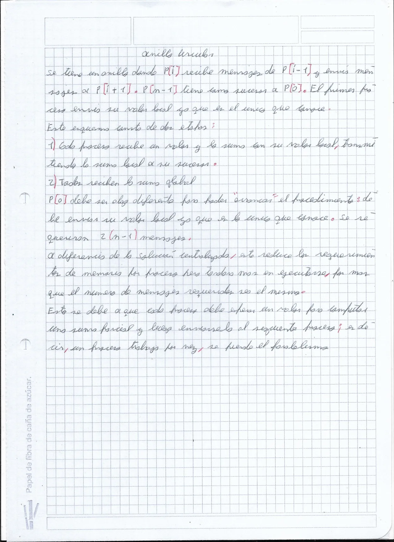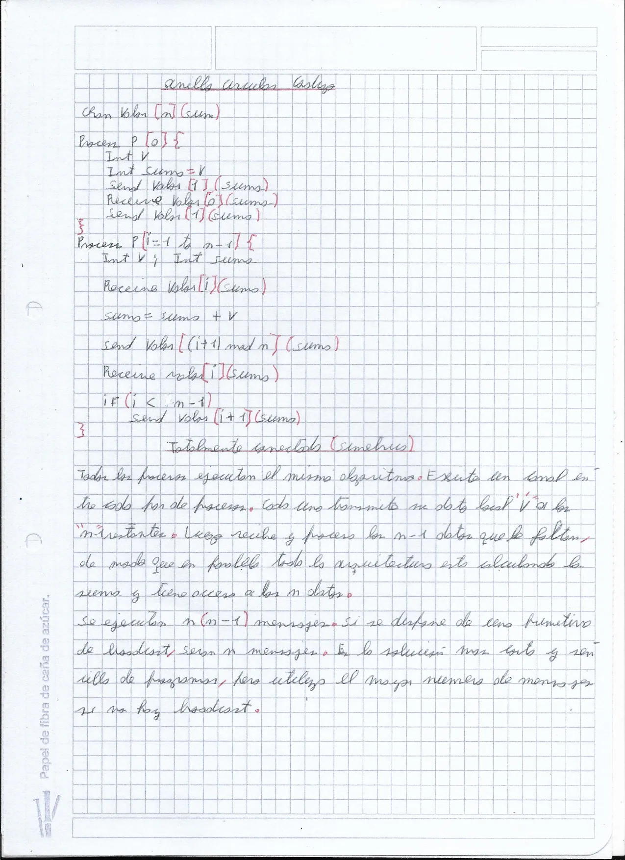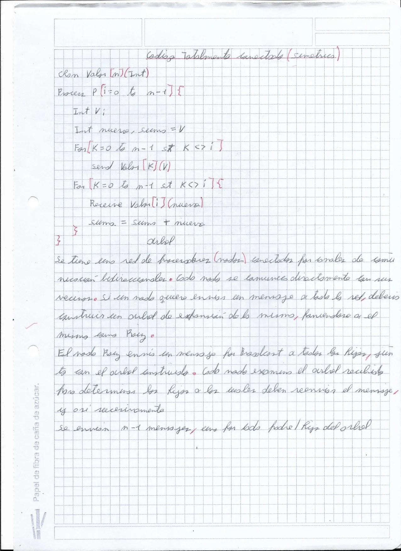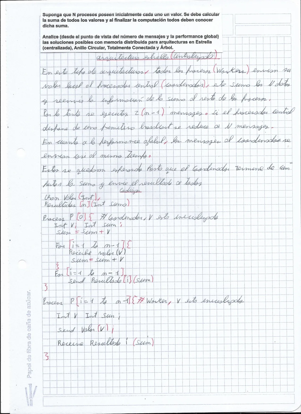 - 9) Suponga n^2 procesos organizados en forma de grilla cuadrada
